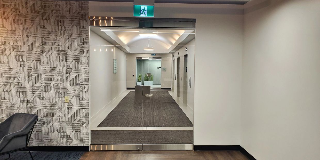 Suite Entry doors feature a clean, modern deign with durable top and bottom rails, ensuring both visual appeal and reliable strength for high traffic areas. These doors accommodate a variety of glass options and can be customized with advanced access control systems and/or ADO's to enhance security and convenience for commercial spaces.